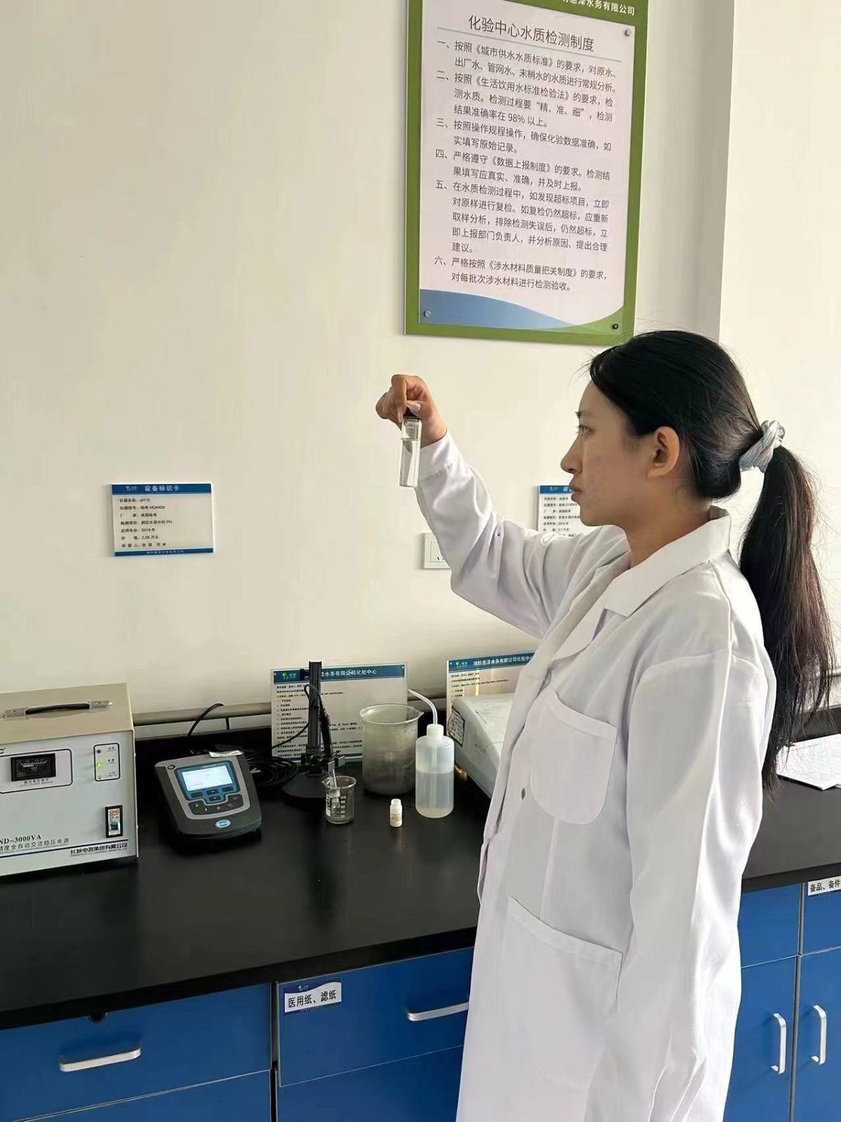 化驗中心加大對原水、出廠水的化驗頻次,擴大監(jiān)測范圍,同時對終端用戶水質進行跟蹤監(jiān)測,達到水質檢測全覆蓋。