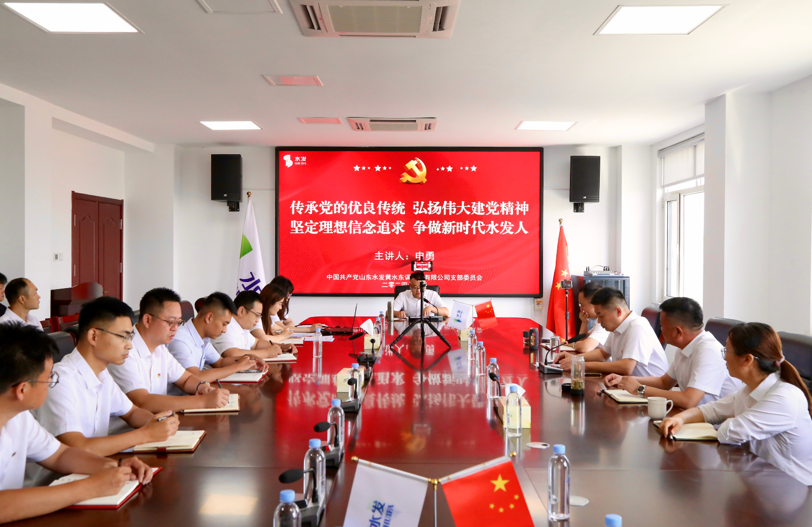 在中國(guó)共產(chǎn)黨成立103周年到來(lái)之際,為弘揚(yáng)偉大建黨精神,進(jìn)一步增強(qiáng)黨員的責(zé)任感和使命感,提升支部全體黨員黨性修養(yǎng)和紀(jì)律規(guī)矩意識(shí)。6月26日上午,黃水東調(diào)黨支部開展“七一”專題黨課活動(dòng),黨支部書記申勇同志以“傳承黨的優(yōu)良傳統(tǒng) 弘揚(yáng)偉大建黨精神,堅(jiān)定理想信念追求 爭(zhēng)做新時(shí)代水發(fā)人”為題進(jìn)行授課。支部全體黨員及公司干部職工參加活動(dòng)。