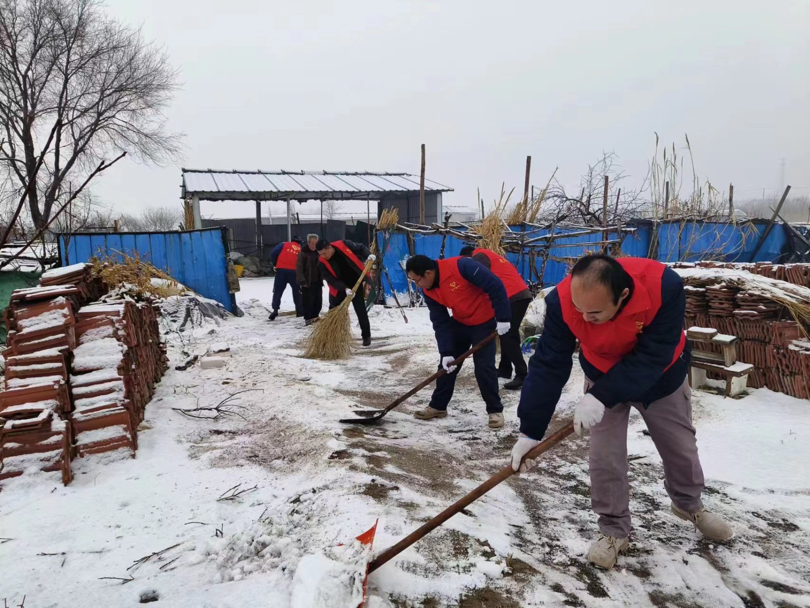 一大早,支部書記胡景青同志帶領(lǐng)黨員干部,拿著掃帚鐵鍬等工具趕往居民區(qū),為沒有勞動能力的孤寡老人清掃門前積雪。掃雪現(xiàn)場,大家發(fā)揚團(tuán)結(jié)協(xié)作,不畏嚴(yán)寒的精神,在刺骨的風(fēng)雪里,吹響了一鼓掃雪除冰,錘煉黨性集結(jié)號。黨員干部手握掃帚、鐵鍬,你鏟我掃,相互配合,熱鬧忙碌的氛圍驅(qū)散了雪天的寒冷。經(jīng)過兩個多小時的勞動,房前屋后的積雪被掃得干干凈凈。為孤寡老人門前鏟出了一條暖心安全道路,贏得了社區(qū)居民的一致好評。